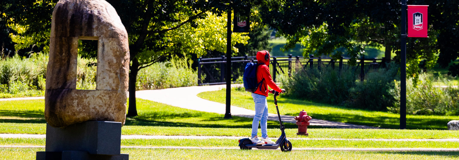 While bicycles, electric bicycles (e-bikes) and electric scooters (e-scooters) can be a quick and efficient way to navigate campus, they also can be an easy and tempting target to thieves. Since NIU does not offer a bike-share program on campus, here are some tips to help protect your personal investment and ride safely.